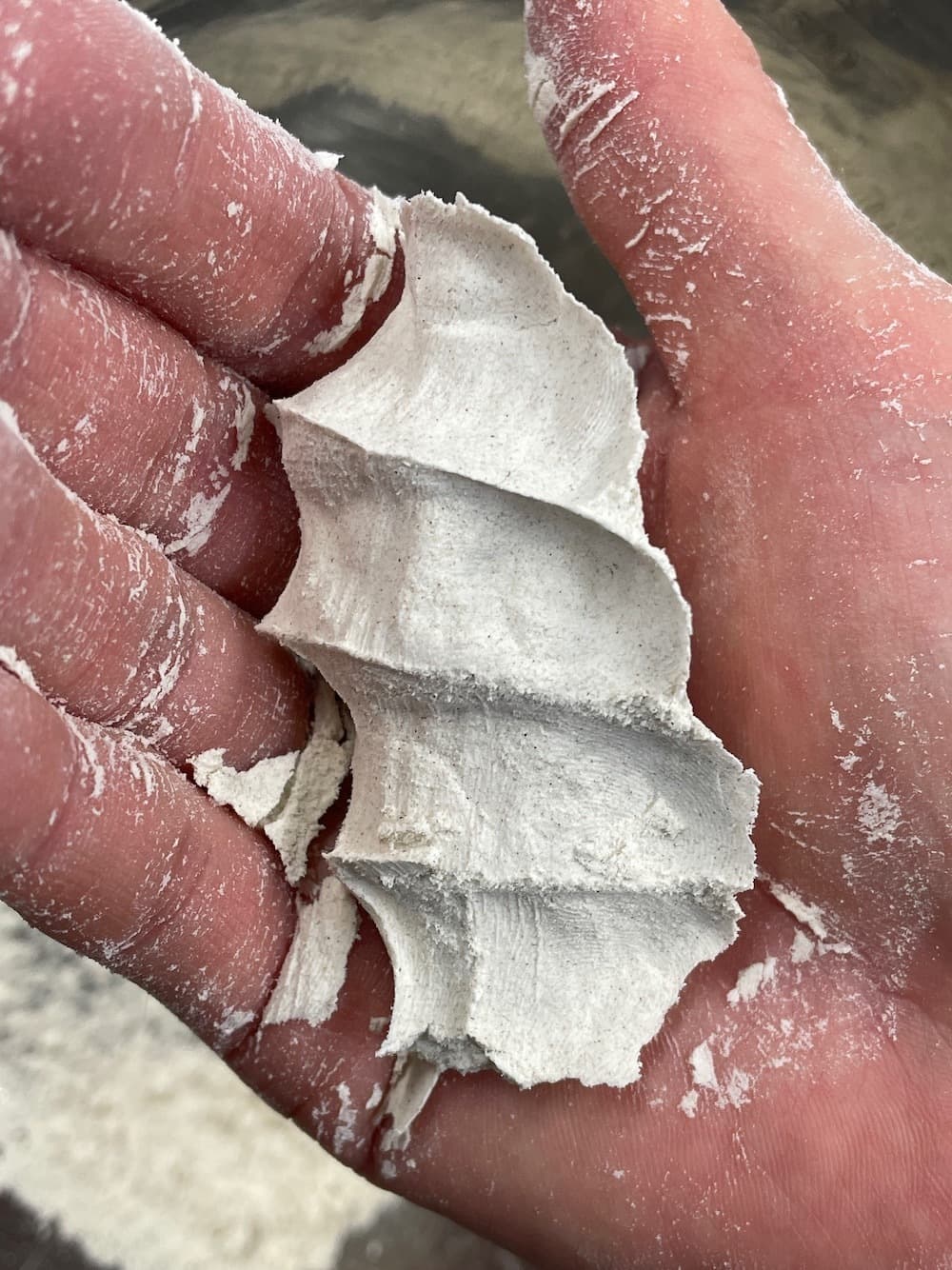 一方、手を開いた瞬間に蕎麦粉がホロホロ崩れサラサラとした砂のような質感の蕎麦粉は、製粉時に高温になって乾いてしまった蕎麦粉で、十割蕎麦には不向きな蕎麦粉と言えます。(右写真)