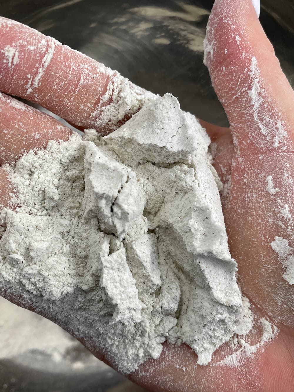 一方、手を開いた瞬間に蕎麦粉がホロホロ崩れサラサラとした砂のような質感の蕎麦粉は、製粉時に高温になって乾いてしまった蕎麦粉で、十割蕎麦には不向きな蕎麦粉と言えます。(右写真)